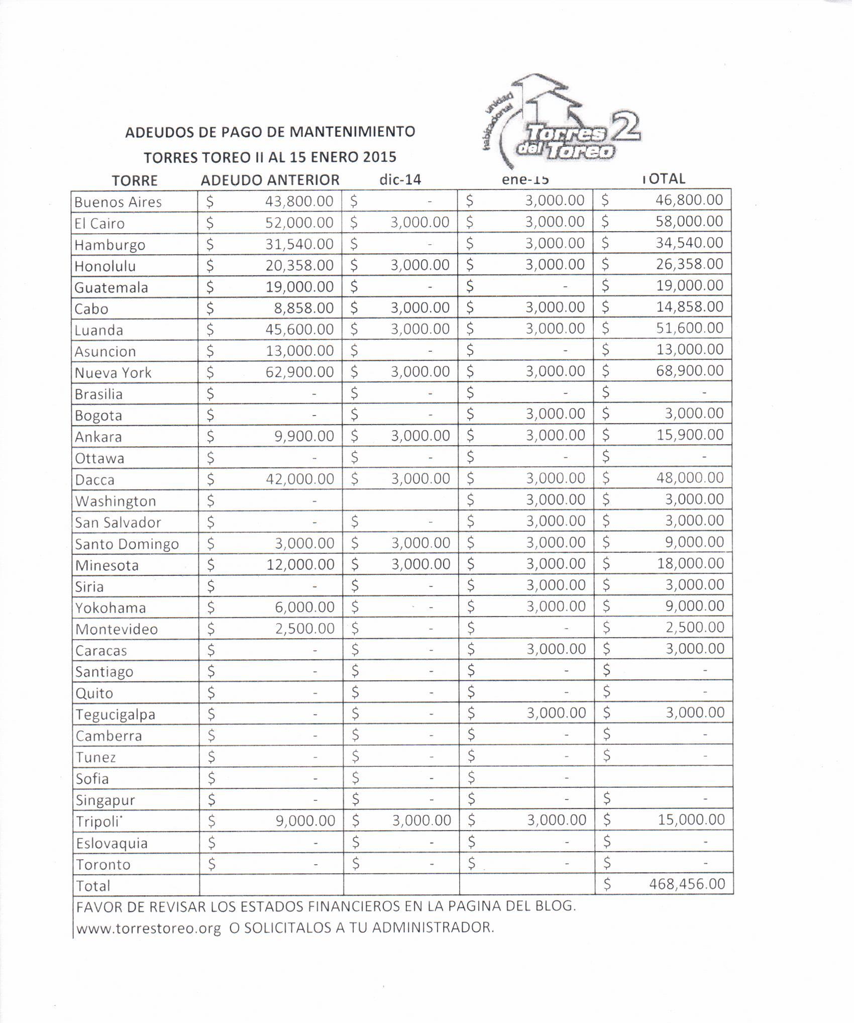 Les comentamos que por falta de disposición y además de ser el edifico mas alto en adeudo ya se inició queja condominal en la PROSOC al EDIFICIO Luanda.